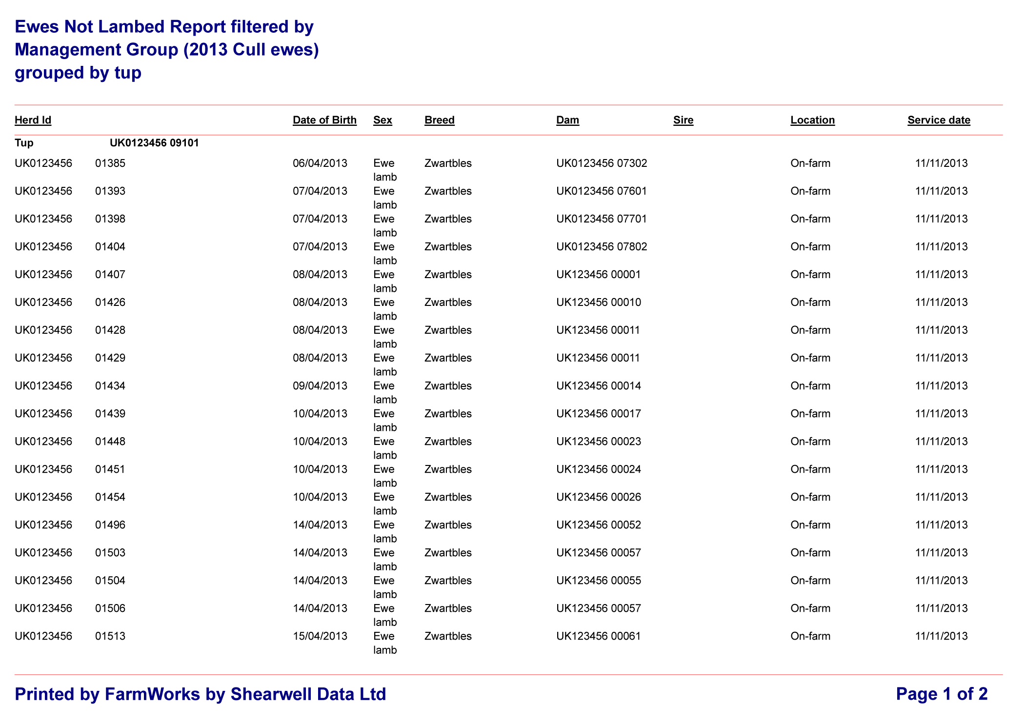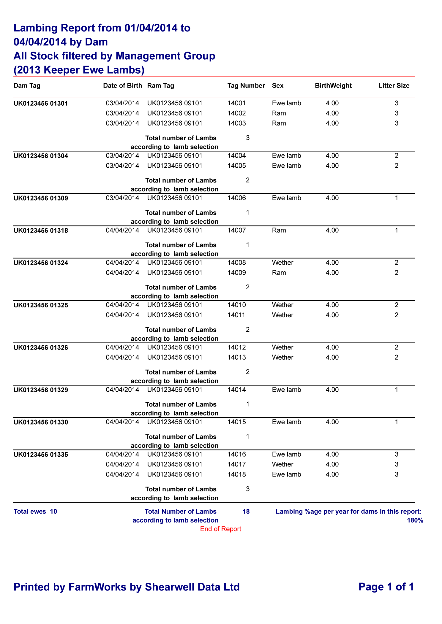 Click on the links below to view a sample lambing related report: