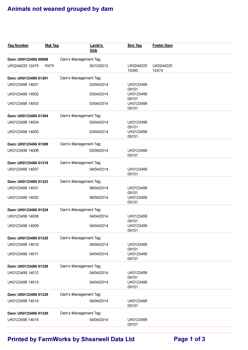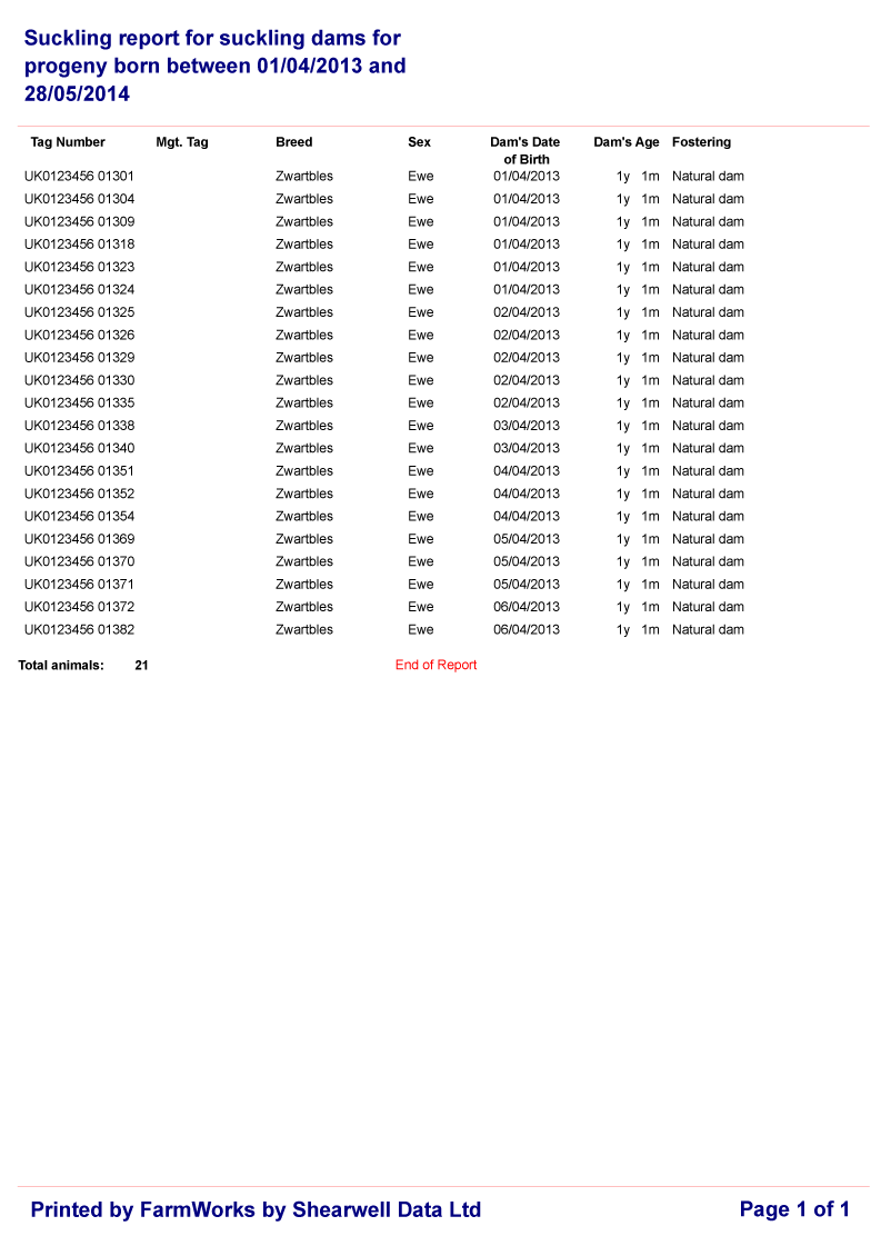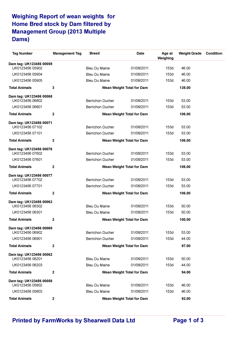 Click on the links below to view a sample weaning related report: