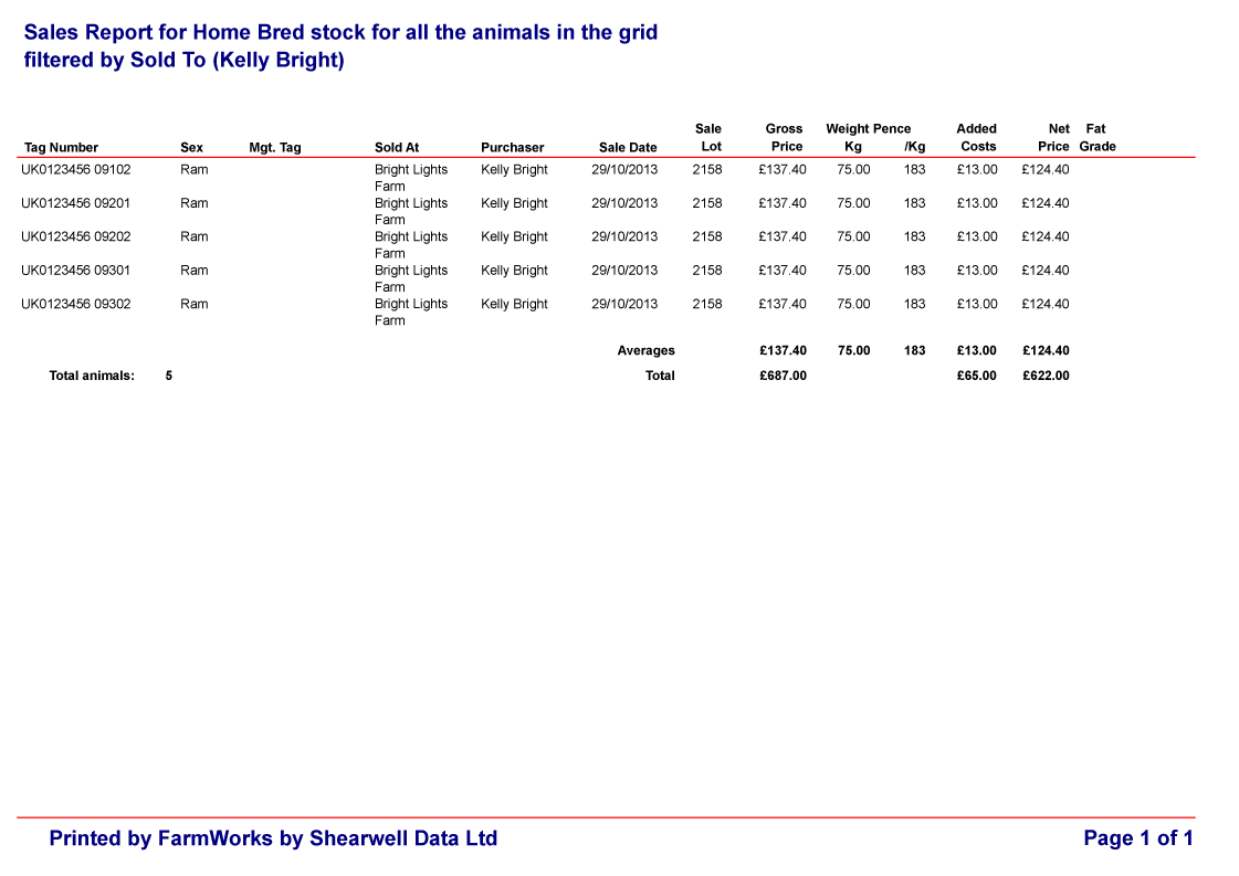 Sample FarmWorks Classic Reports