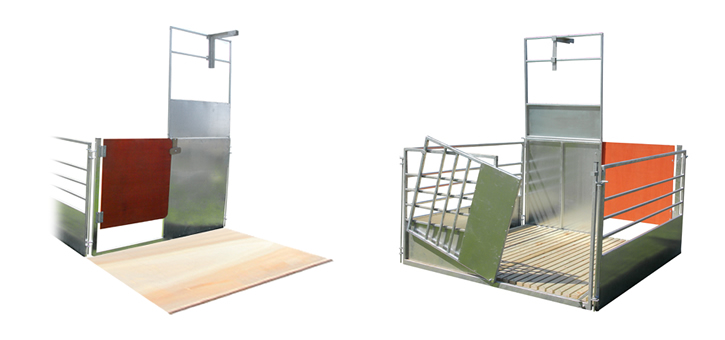 One complete single pen comprises front gate panel, back gate panel, two side panels, pen floor, plywood shearing board, motor bracket and four locating pins.