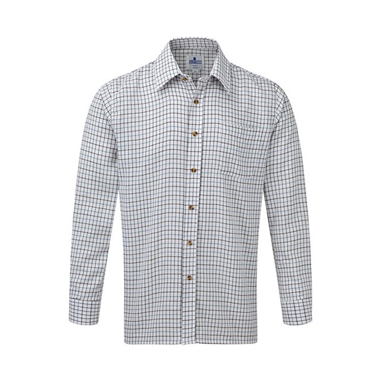 With 65% polyester and 35% cotton shirt is a brushed woven fabric for warmth and comfort. It has a single breast pocket with a pleated back and twin needle stitching.